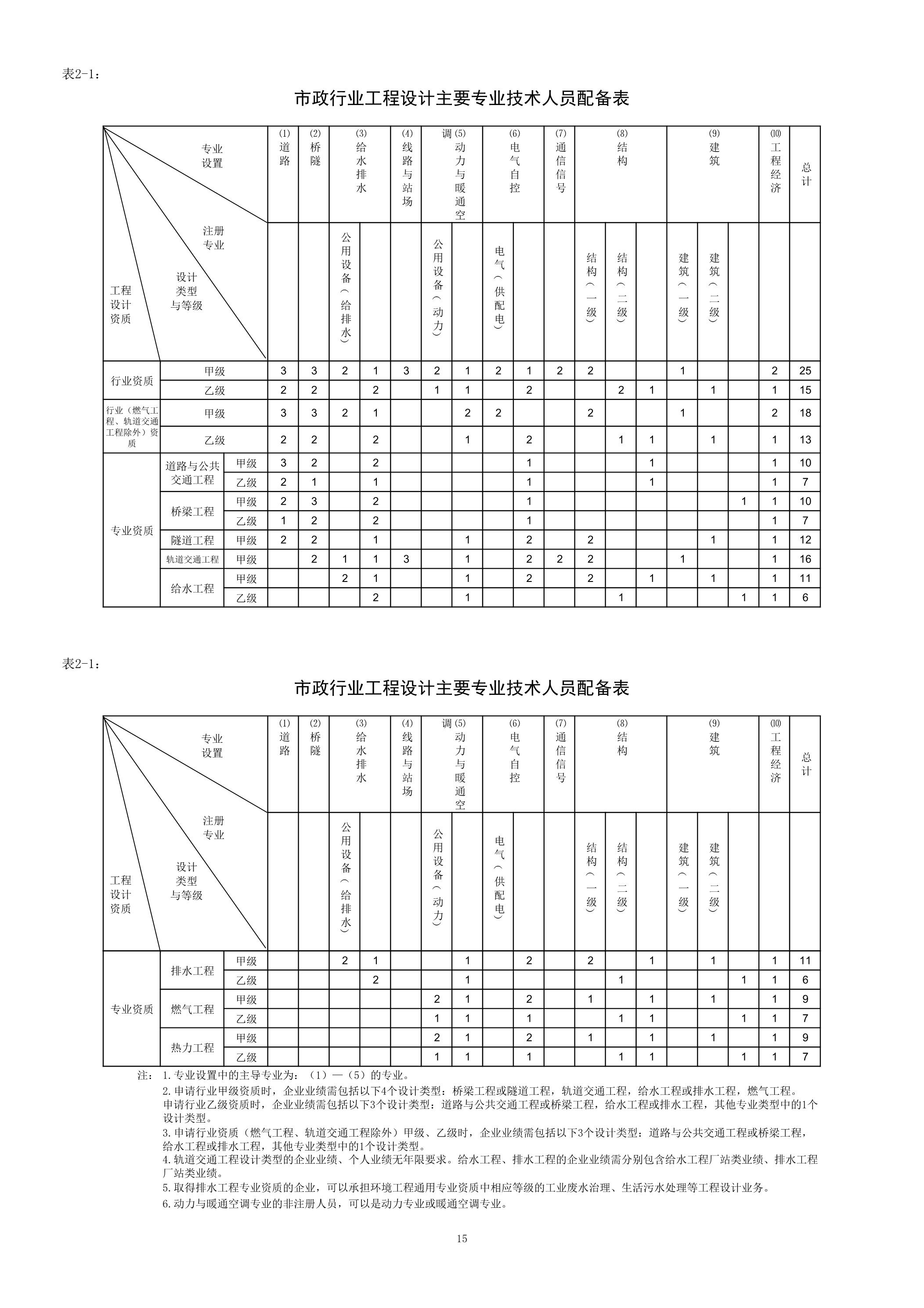 (2)主要專業技術人員數量滿足所申請行業資質標準中主要專業技術人員配備表規定的要求。